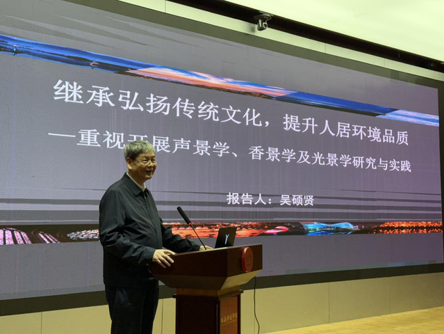 11月26日,“科技大师”系列讲座第152讲学术报告在明德楼B108报告厅开讲。本期讲座有幸邀请到建筑技术科学领域唯一的中国科学院院士、华南理工大学建筑学院教授吴硕贤院士作为主讲嘉宾,讲座主题为《继承弘扬传统文化,提升人居环境品质——重视开展声景学、香景学及光景学的研究与实践》。