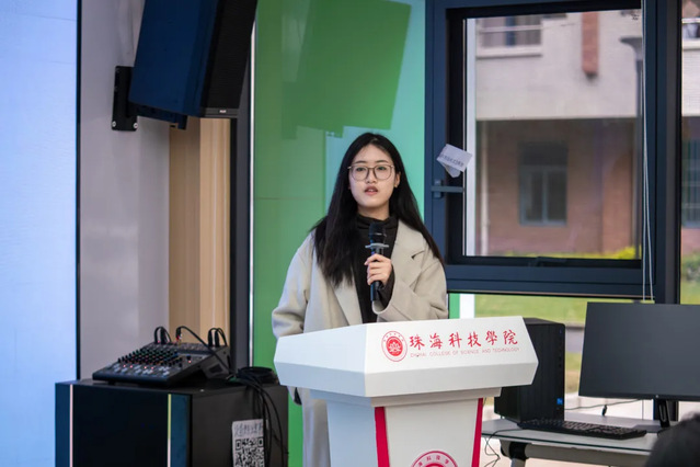 随后,黄冰冰开始了她的分享,她向在座的师生介绍了自己的基本情况。作为一名中共党员,她不仅在学业上取得了优异的成绩,连续三年获得学业奖学金和国家励志奖学金,还在多个国家级和省级设计竞赛中斩获佳绩。充分展示了她在视觉传达设计领域的才华和实力。