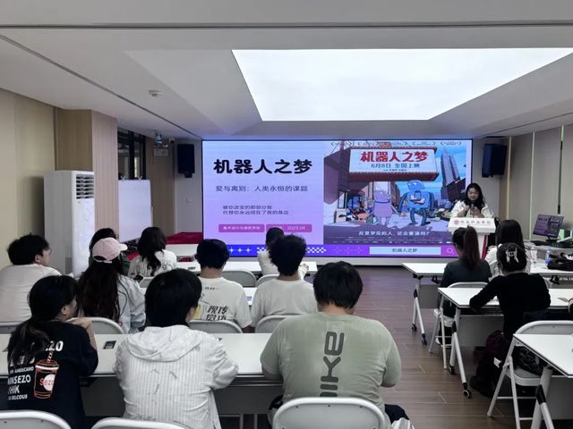 4月10日,在大学生“一站式”社区知行馆举办第二期活动——探索心灵,与自己对话《机器人之梦》心理观影沙龙活动。通过播放动画短片《机器人之梦》,让同学们跟随孤独小狗与机器人的相遇故事,在无对白却充满温情的画面中,感受细腻情感。观影后,主持人深入解读,引导同学们走进电影的视听世界,分析角色心理,在镜头切换与音乐流转中探索心灵奥秘。互动环节以 “冥想”“共鸣” 等词展开讨论,促进思考交流,让同学们体会心理电影的魅力,在思想碰撞中审视内心压力,学会与压力共处,做情绪的主人。此次活动引导同学们在光影中探索自我,以积极心态面对生活,为学品养育工程注入温暖力量。
