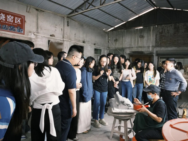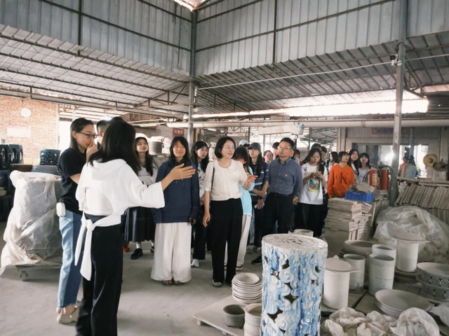 4月18日,美术设计与建筑学院非遗工作室师生在学院党委副书记、副院长黎海楠,院长助理叶振艳,学工办老师冯小桃、谢行发、冯宇婕三位老师的带领下,走进小榄“菊城陶屋”,开展岭南陶塑技艺传承调研活动。这座由省级非遗传承人何湛泉于1983年创立的陶艺基地,以“古法新承”为核心理念,为当代非遗活化提供鲜活样本。为深耕传统文化,拓展引领广度。通过田野调查,挖掘传统工艺的现代转化路径,为文化遗产课程开发积累实证案例。