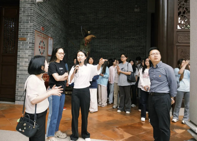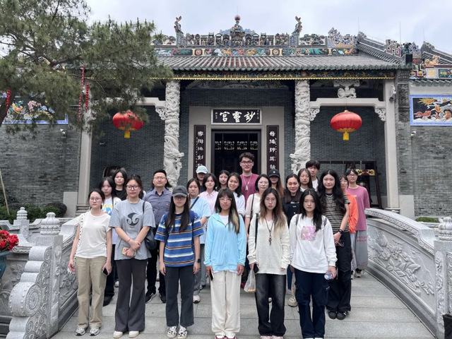 参观“菊城陶屋”后,我们来到了不远处的玅灵宫,玅灵宫屋脊的修缮由“广东传统建筑陶塑瓦脊制作技艺”代表性传承人、广东十大工匠何湛泉承造。参观期间何老师带领我们辨别“菊城陶屋”的作品,欣赏并不断学习非遗文化。