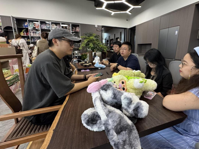 随后走访了大漂亮东莞玩具有限公司,该公司作为近两年在东莞迅速崛起的本土潮玩企业,公司自有IP的“娃三岁”系列毛绒玩偶,目前已在东南亚积累近 400 万粉丝,全球出货量突破 2000 万只,成为现象级原创 IP。