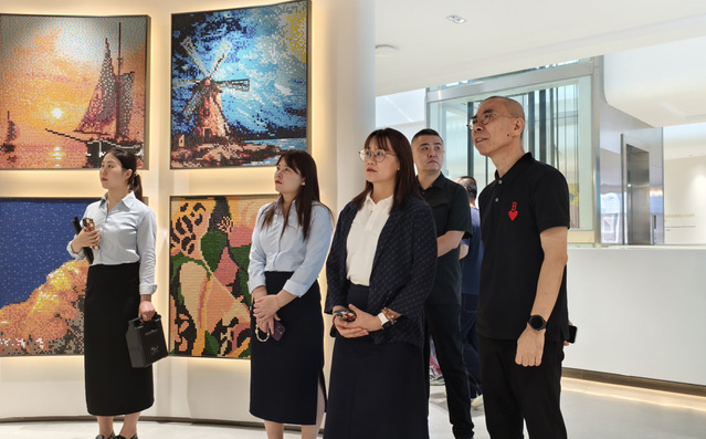 吴卫光院长一行先后参观了白兔瓷砖全球运营中心和世界马赛克艺术馆,深入了解了旭日陶瓷有限公司的发展历程、企业文化内核,以及在智能制造、科技创新、产品设计、全球化市场布局等维度取得的卓越成就。近距离品鉴臻品墙地砖、艺术马赛克、别墅外墙砖、精工外墙砖、小规格墙地砖等产品魅力,深刻感受马赛克镶嵌艺术所带来的视觉震撼与心灵触动。通过世界马赛克艺术馆内陈列的大量珍贵的历史锦砖实物、文献资料和当代艺术作品,深入认识到中国锦砖马赛克的发展脉络与艺术演变。